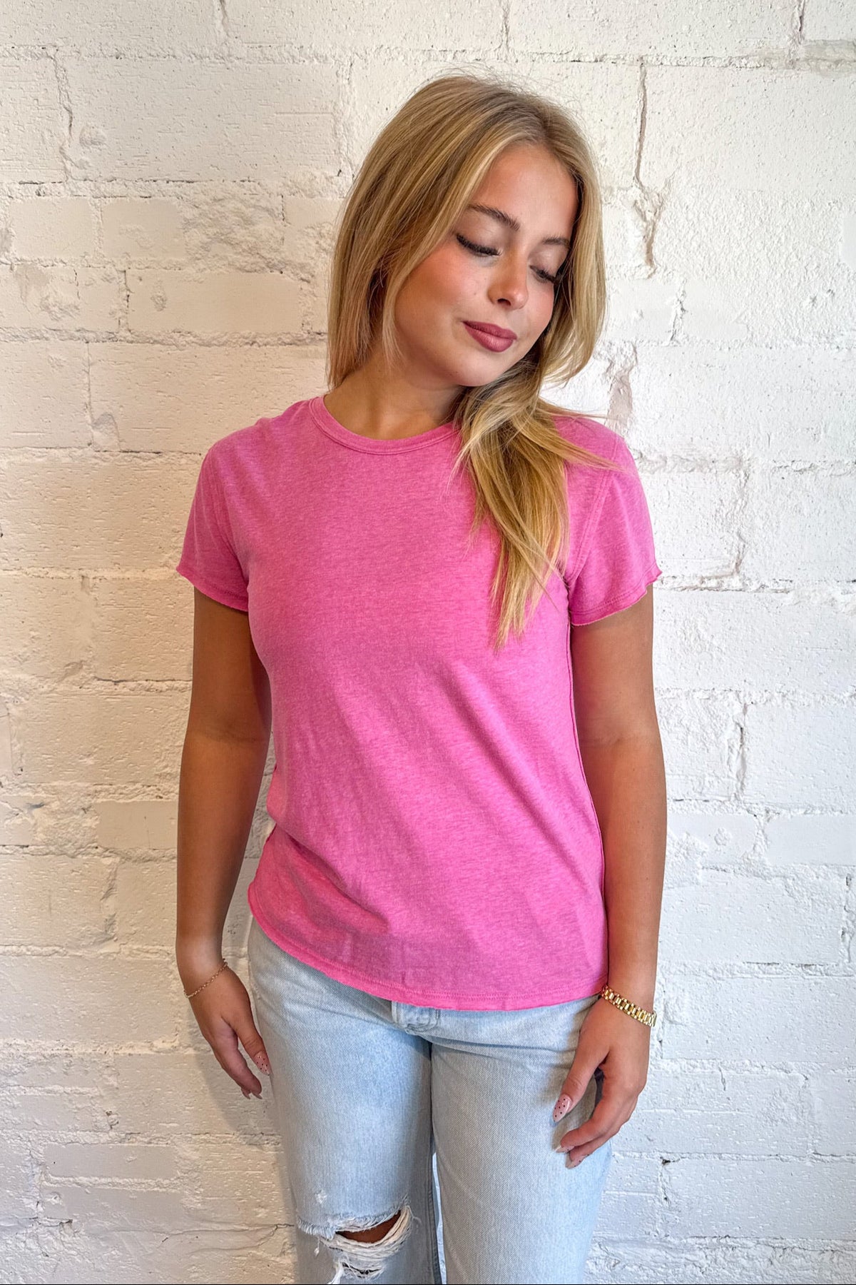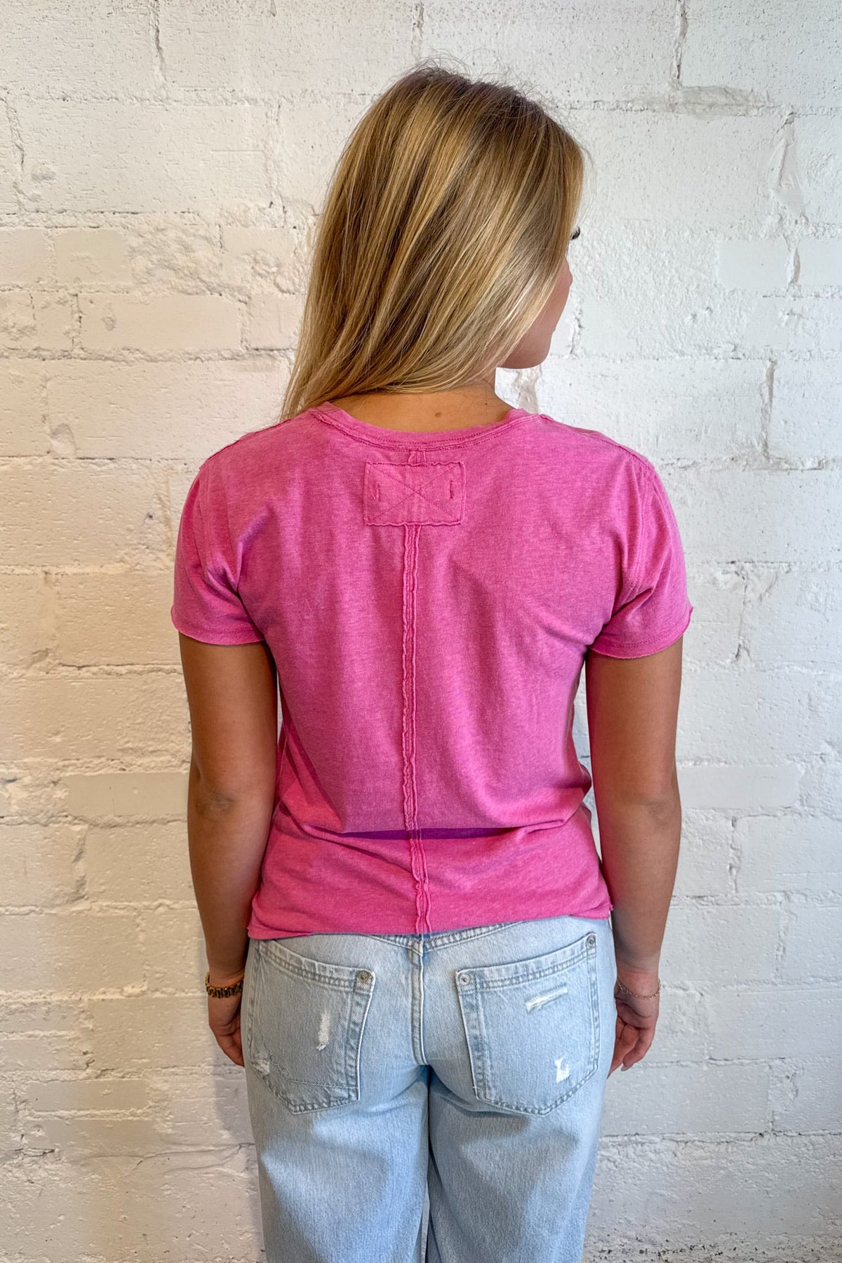 This chic and casual tee is designed to elevate your everyday look with its relaxed, bohemian-inspired vibe. Whether you're running errands, meeting friends for coffee, or lounging on the weekend, the Nova Tee provides both comfort and style in one perfect package. The Free People Nova Tee features a loose, oversized fit that drapes beautifully on the body. The relaxed silhouette ensures ultimate comfort, while the soft cotton blend keeps you feeling cool and breathable all day long. The crewneck design adds a classic touch, making it versatile enough to pair with anything in your wardrobe. The Hibiscus Pink color offers a warm, flattering hue that complements a variety of skin tones, giving your outfit a fresh, summery feel.