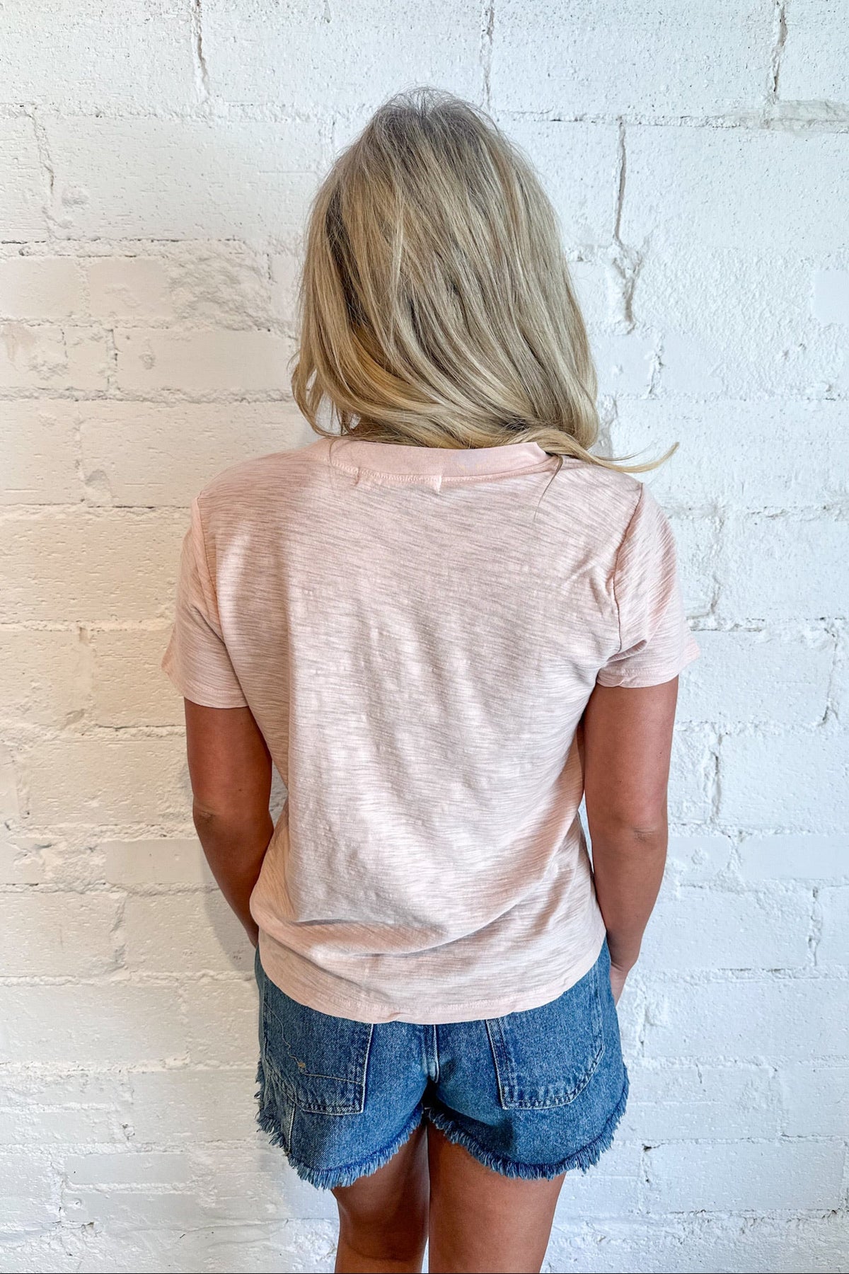Project Social PeachPuff Plata Notched Tee, Basic Top, Tops, Adeline Boutique, Tee, Dallas Boutique, Boutiques
