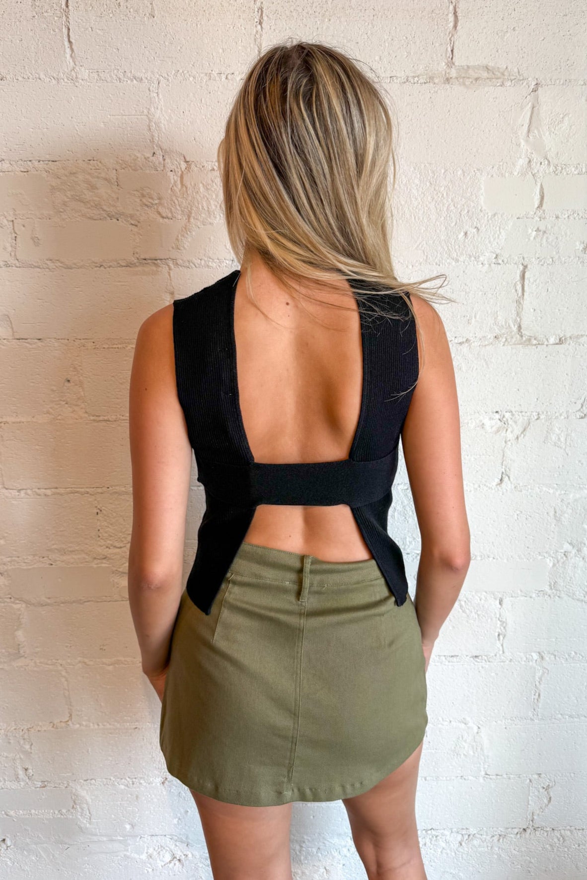 Simple from the front, stunning from the back—the Peekaboo Knit Top is your new go-to for elevated basics with a bold twist. This black knit top features a clean, minimal front and a surprising open-back design that adds just the right amount of edge to your look. From a soft, stretchy ribbed knit, the Peekaboo Top hugs your figure in all the right places while keeping things comfortable and breathable. The open back adds a statement moment that’s perfect for nights out, dinner dates, or anytime you want to serve subtle drama. Whether you're styling it with cargos, leather pants, or a sleek maxi skirt.