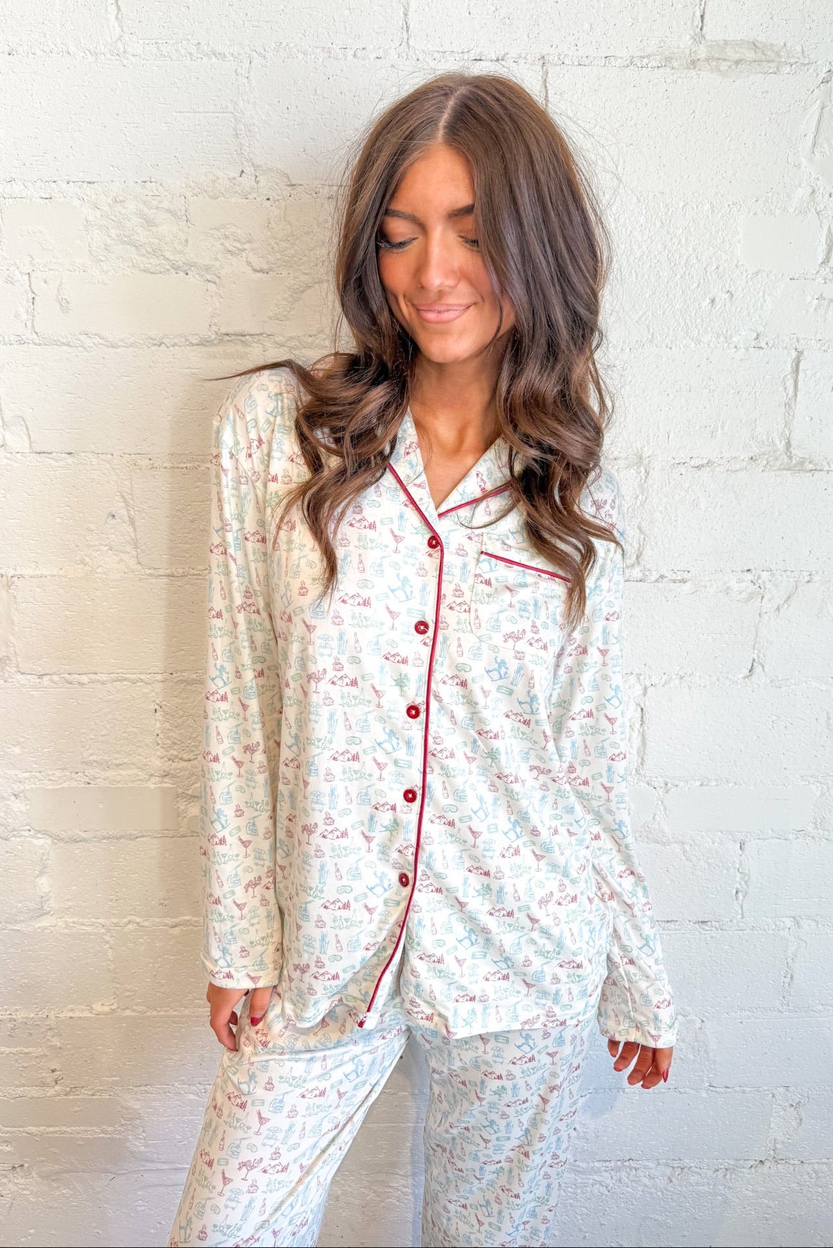The perfect combination of cozy comfort and festive, cold-weather charm. Designed for nights by the fire, snowy cabin getaways, and relaxed mornings at home, this pajama top captures the spirit of après-ski lounging with its soft feel and seasonal style. Crafted from ultra-comfortable, breathable knit fabric, the Après Ski Pajama Top keeps you warm without feeling bulky, making it ideal for layering or wearing on its own. The fabric is smooth against the skin and offers the perfect amount of stretch for relaxed movement. A winter-inspired print or pattern adds a playful touch that instantly elevates your bedtime routine and brings a cheerful, cozy vibe to the season. Designed with a relaxed fit, this top offers all-day comfort while still looking put-together. Thoughtful details—such as ribbed cuffs, a classic crew neckline, or a button-front design depending on your style variation—give it a polished finish that pairs effortlessly with the matching Après Ski Pajama Bottoms.