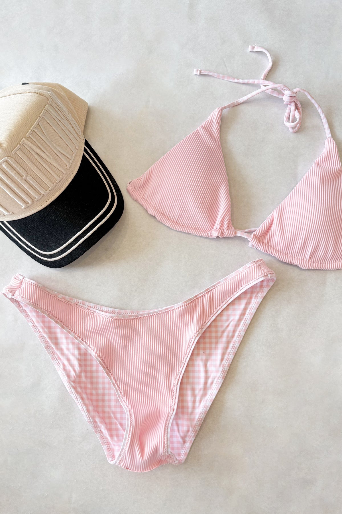 Double your swim style with the Pink Gingham Reversible Swimsuit Bottoms from Adeline Boutique. Featuring a sweet pink gingham print on one side and a versatile reverse design on the other, these bikini bottoms give you two stylish looks in one. Designed for a flattering and comfortable fit, they’re perfect for beach days, poolside lounging, or vacation getaways. Pair them with the matching Pink Gingham Reversible Swimsuit Top or mix and match for endless summer outfit options from Adeline Boutique.