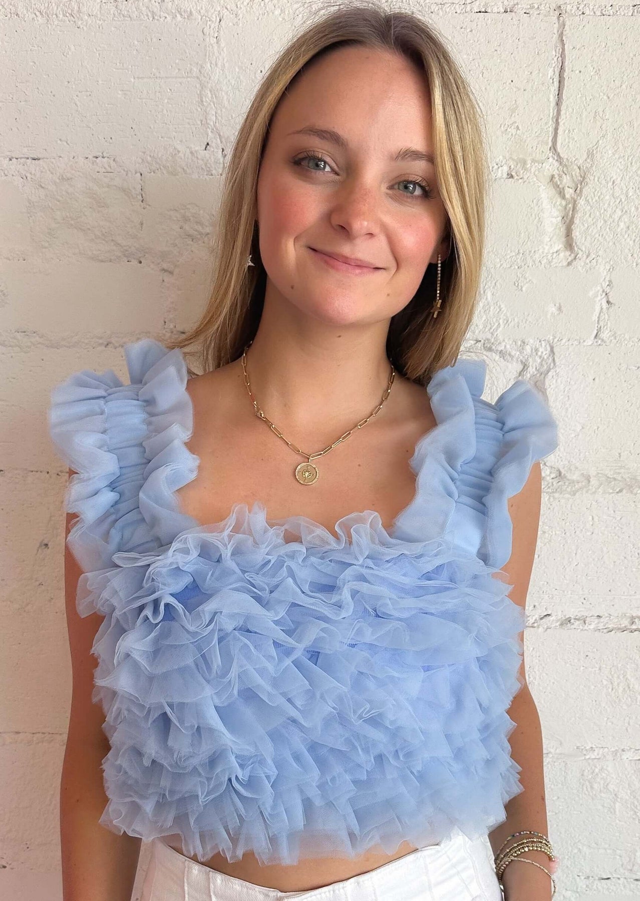 Indulge in sweet style with the Blueberry Muffin Top, a  charming light blue ensemble that adds a delectable touch of whimsy to your wardrobe.