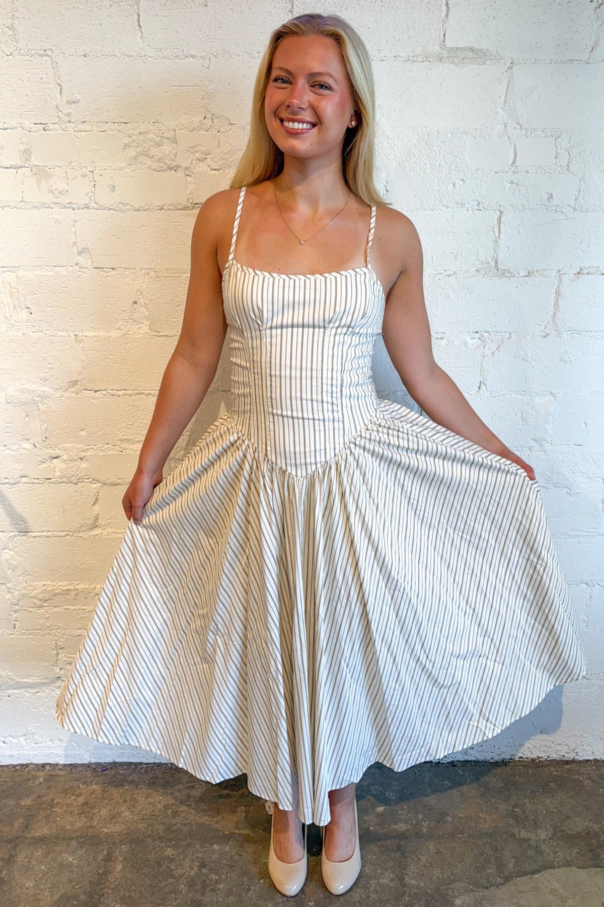 Cocoa Stripe Fit & Flare Maxi, Mai Dress, Adeline Boutique, Dallas Boutique, Boutique Dresses