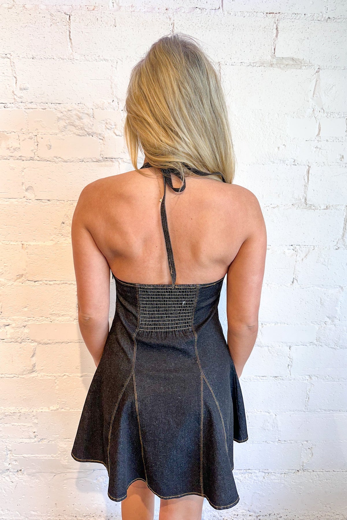 This unique dress features a halter neckline and pleated detailing, offering a flattering fit that combines both structure and flow. Made from high-quality denim, the fabric provides durability and comfort while maintaining its effortlessly chic style. The dress is designed to make a statement—whether you’re pairing it with your favorite cowboy boots for a touch of rustic flair or dressing it up with heeled sandals for a more polished look. The mini length adds a youthful, contemporary vibe, making it a versatile piece that transitions seamlessly from day to night. Ideal for a weekend getaway, casual outings, or adding a bit of edge to your wardrobe, the Cowboy Boots & Pleats Halter Denim Mini Dress is a must-have for those who appreciate a mix of classic style and modern sophistication.