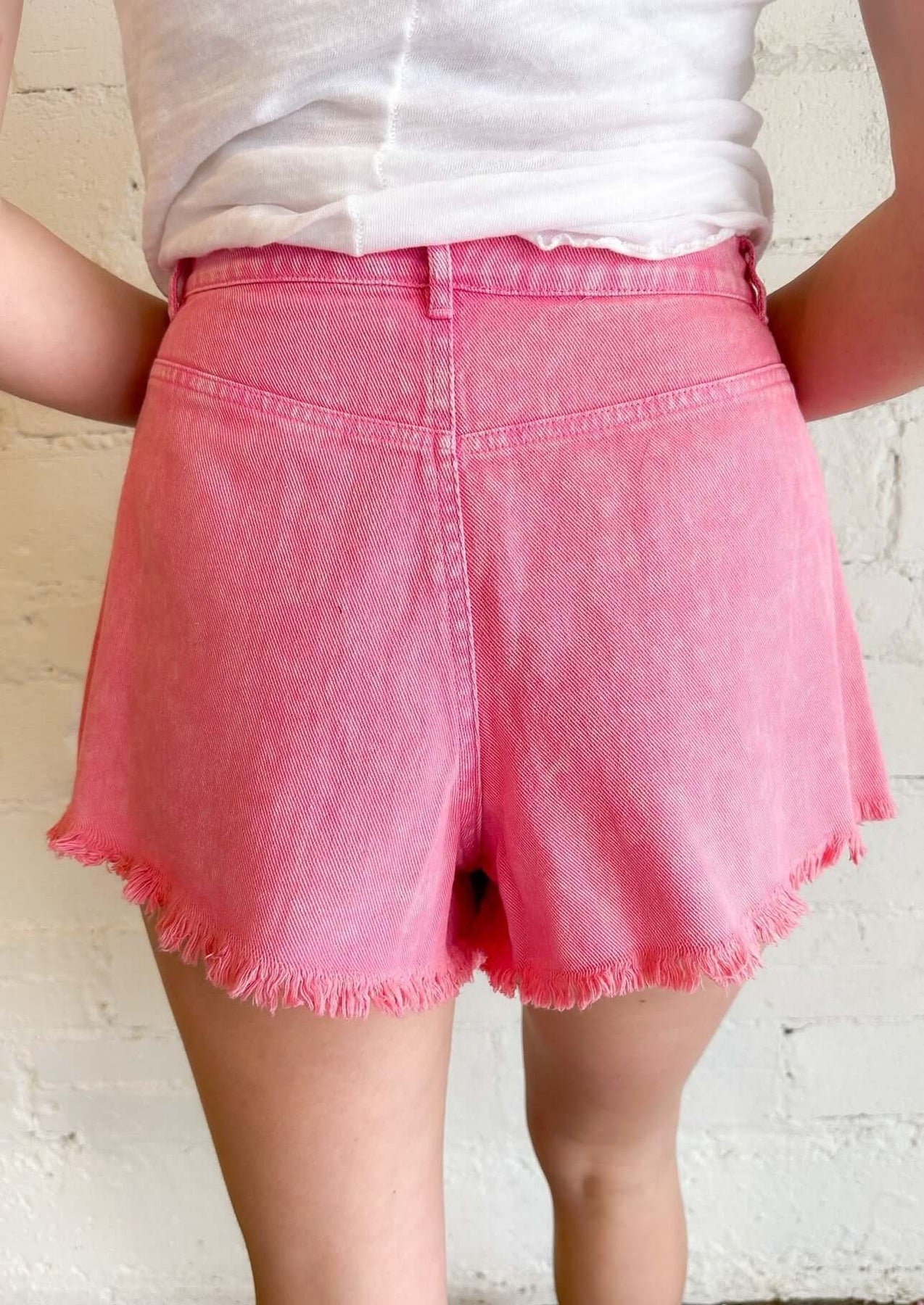 Elevate your casual chic style with our pink denim shorts, a vibrant and versatile staple that adds a playful touch to any summer outfit.