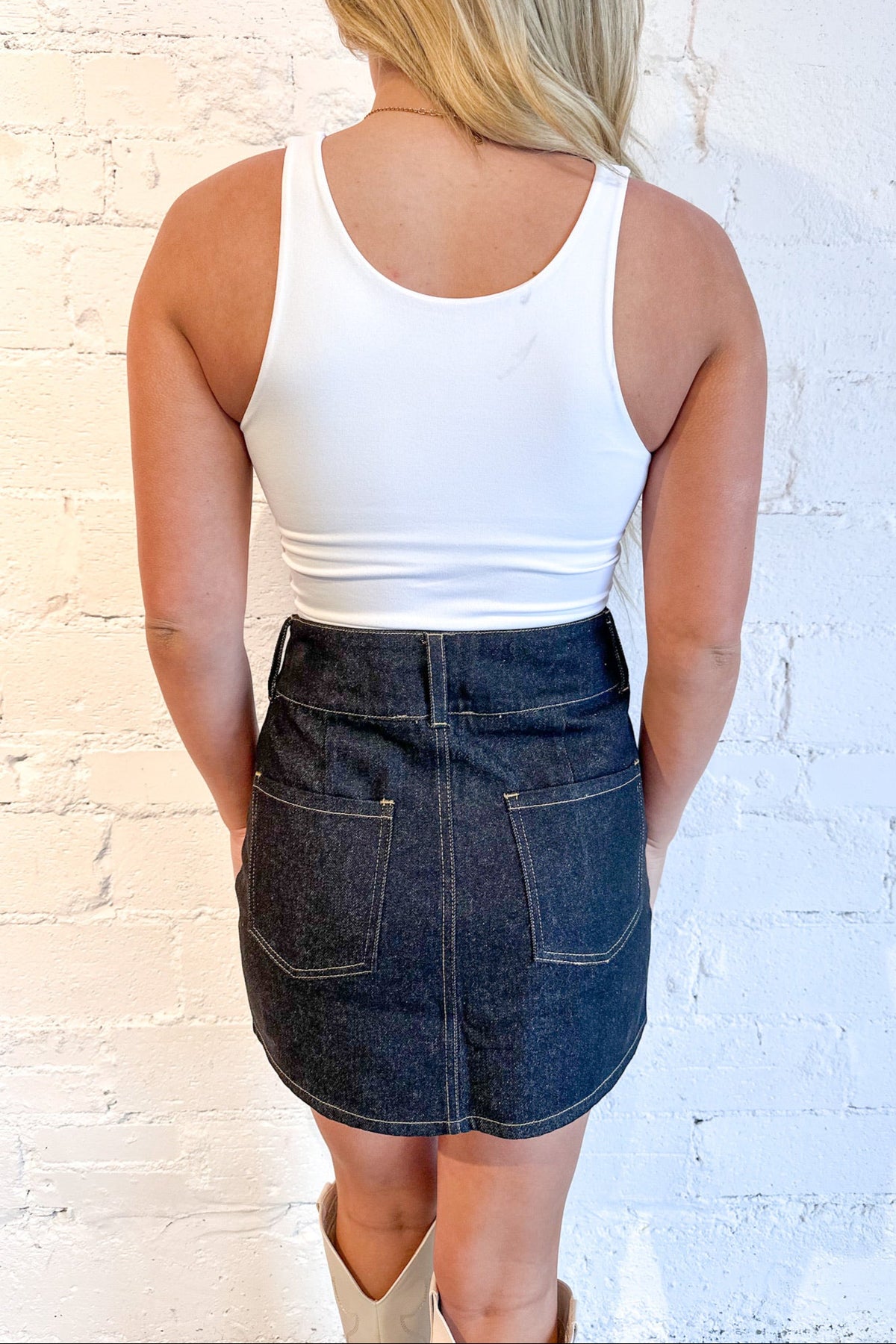 Pearl Pocket Denim Skirt, Denim, Skirt, Rodeo Outfit, Adeline Boutique, Dallas Boutique