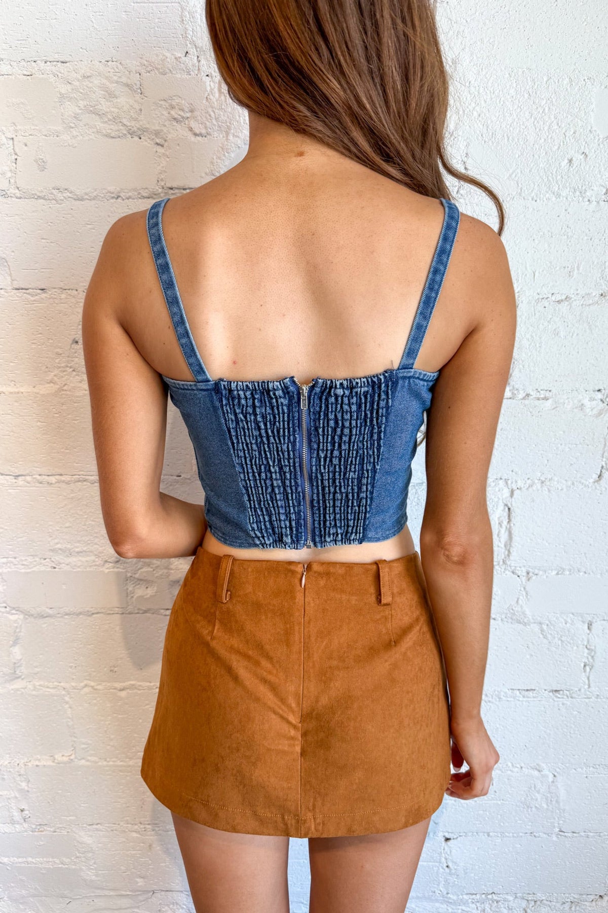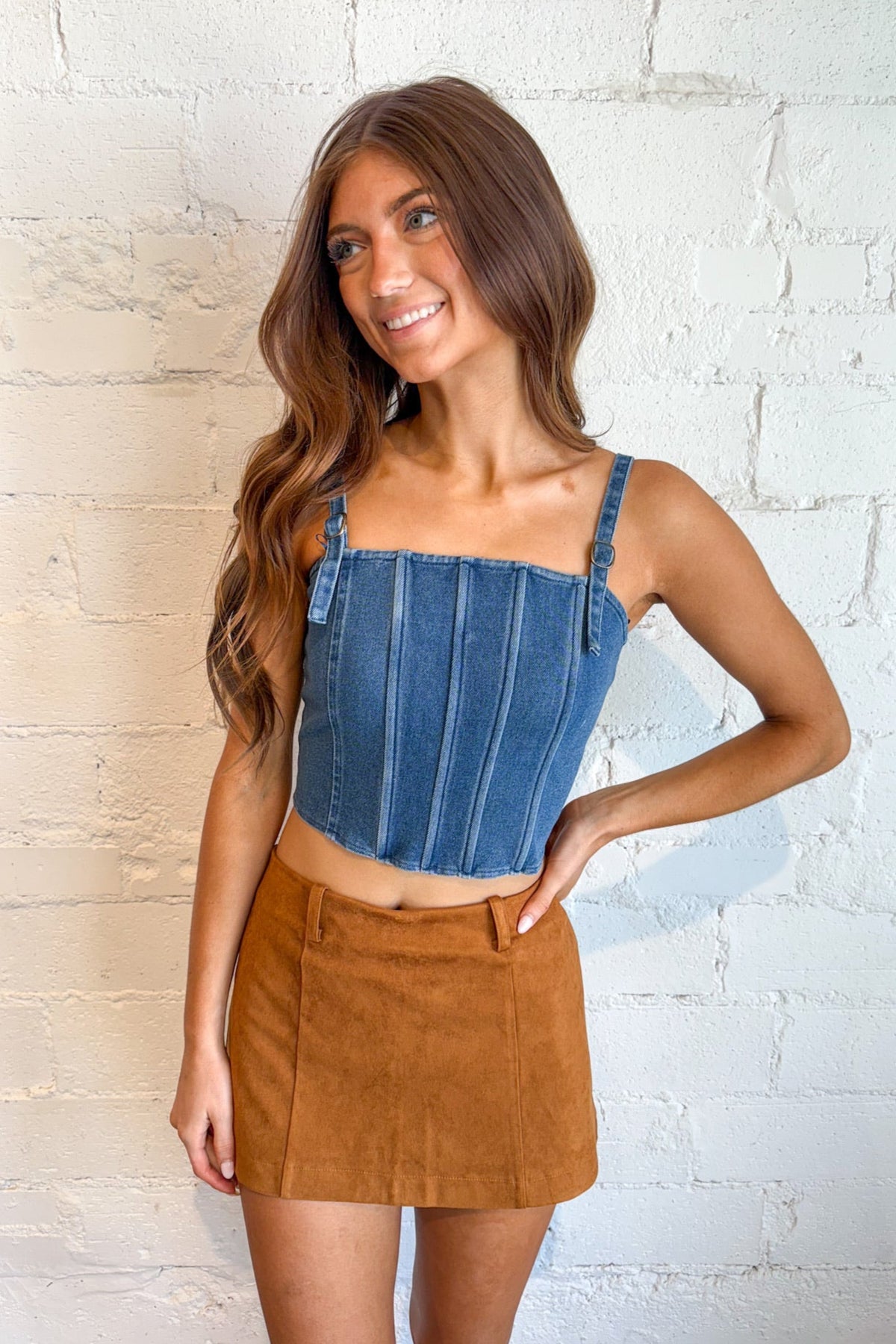 A cozy-chic essential that blends the comfort of shorts with the look of a flirty mini skirt. Crafted from a buttery soft suede fabric, this warm-toned skort delivers serious autumn energy with a polished, elevated twist. Designed in a rich pumpkin spice hue, this mini skort is perfect for everything from pumpkin patch dates and fall festivals. The mid-waisted fit is ultra-flattering, while the hidden shorts give you comfort.