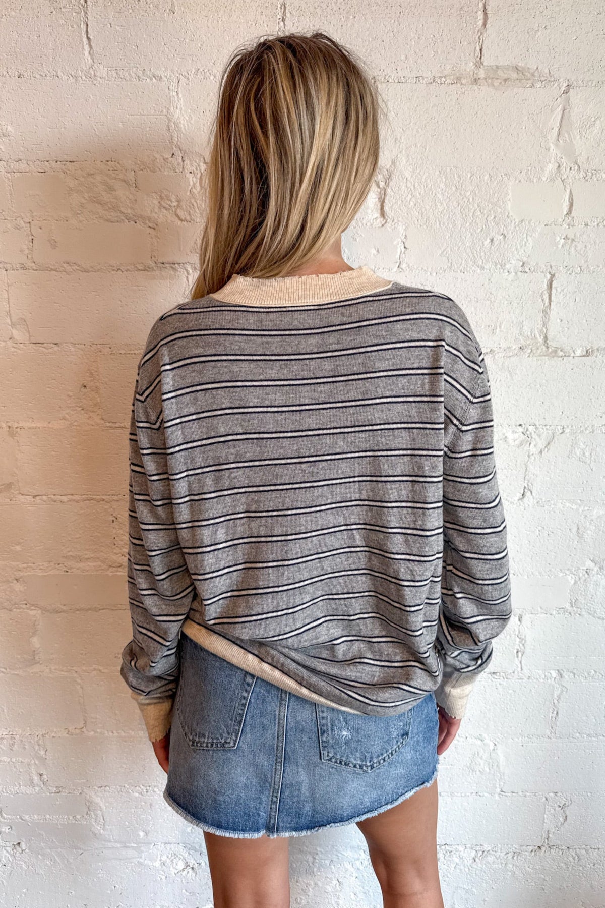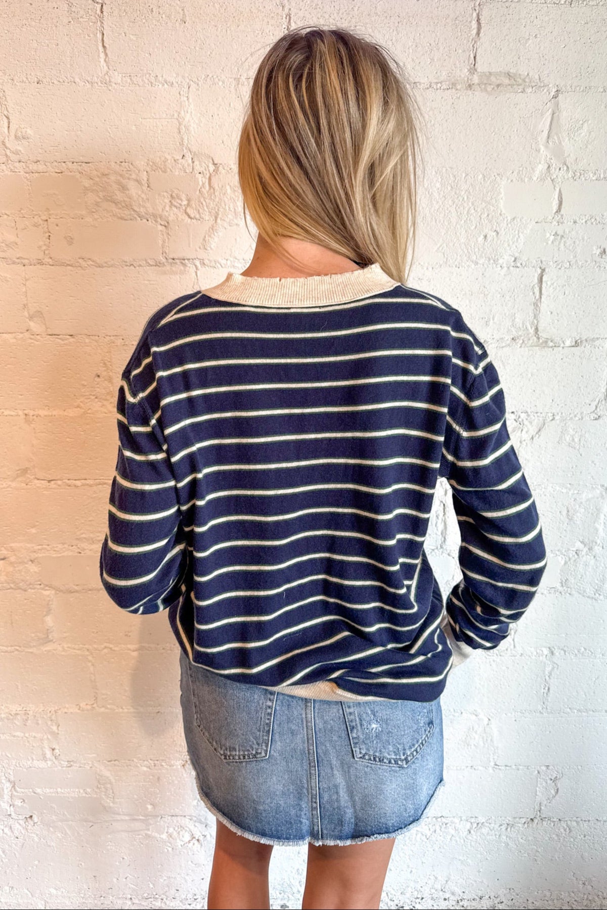Cozy meets cool in our Striped V-Neck Sweater Top, the perfect wardrobe staple that blends effortless comfort with timeless style. Featuring a flattering v-neckline and classic horizontal stripes, this lightweight sweater top brings that "off-duty model" vibe to your everyday looks—all while keeping things soft, breathable, and versatile. Designed with a relaxed yet feminine fit, the Striped V-Neck Sweater Top pairs beautifully with everything from high-rise jeans and mini skirts to tailored trousers and biker shorts. The v-neck cut elongates the neckline and adds a hint of sophistication, making this top easy to dress up or down.