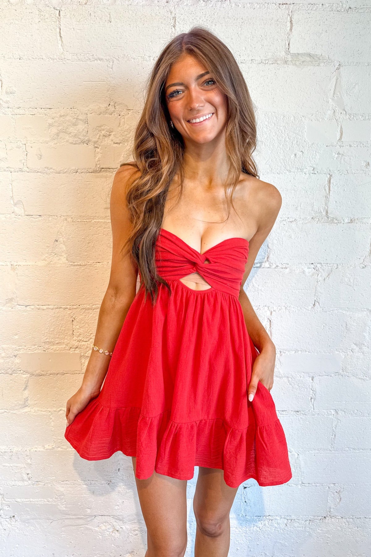 The Summer Nights Strapless Romper Dress from Adeline Boutique. This flirty, feminine piece is where style meets functionality — offering the breezy, romantic look of a dress with the hidden comfort of a romper. Whether you're dancing under the stars, heading to a patio dinner, or strolling along the boardwalk, this strapless romper dress is designed to move with you and keep you feeling fabulous all night long. The Summer Nights Romper Dress stays securely in place while showing off your shoulders and collarbone — the ultimate summer statement. The flowy skirt overlay gives the illusion of a mini dress, while the built-in shorts underneath offer total freedom and comfort.